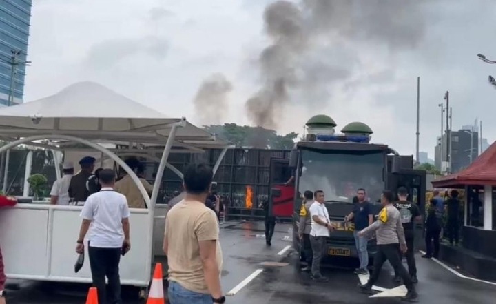Situasi memanas, para demonstran melempar batu ke dalam kompleks gedung DPR RI. Selain itu, mereka juga membakar spanduk di depan pagar utama gedung parlemen itu.