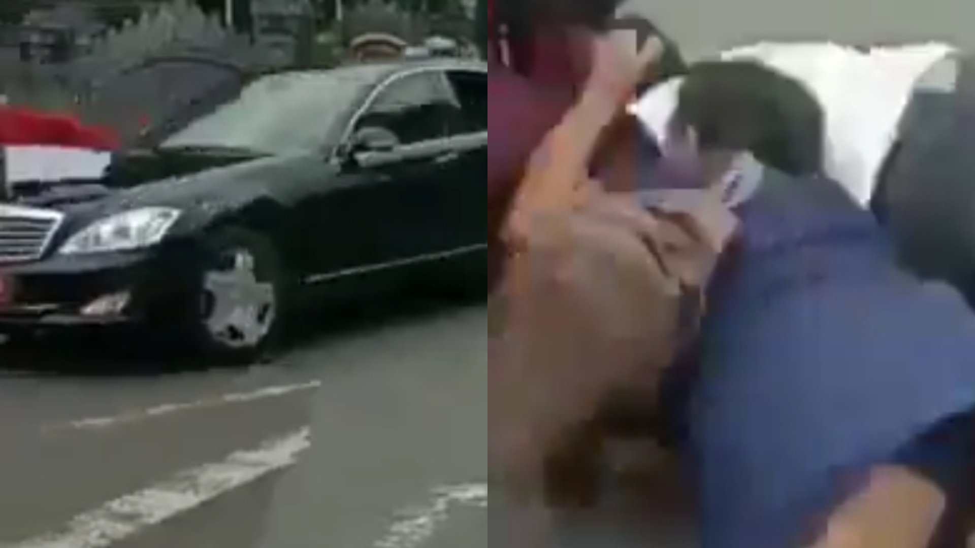 Dilihat rilpolitik.com dalam videonya itu, tampak seoarang laki-laki dan seorang perempuan berebut kaos yang dilempar dari mobil Presiden Jokowi. Mereka berusaha mendapatkan kaos tersebut hingga lupa terhadap keselamatan dirinya hingga tersungkur di aspal.