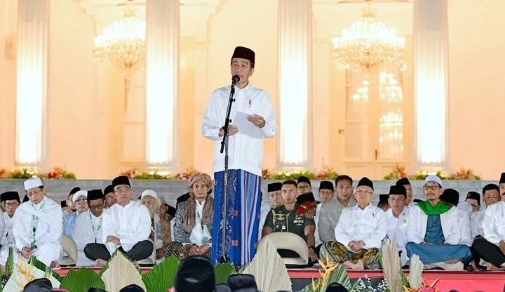 Hal itu disampaikan Jokowi saat memberikan sambutan dalam acara Zikir dan Doa Kebangsaan 79 Tahun Indonesia Merdeka di Halaman Istana Merdeka, Jakarta, Kamis (1/8/2024) malam.