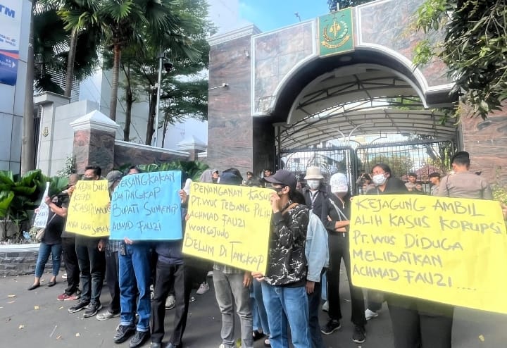 “Kami nilai bahwa penanganan kasus korupsi di PT WUS Sumenep sangat tebang pilih. Sebab, Bupati Sumenep Achmad Fauzi belum juga diperiksa dan ditangkap. Padahal, ia diduga kuat ikut terlibat dalam kasus korupsi di PT WUS,” kata Fathor dalam orasinya di depan Gedung Kejagung RI pada Kamis (31/8/2025).
