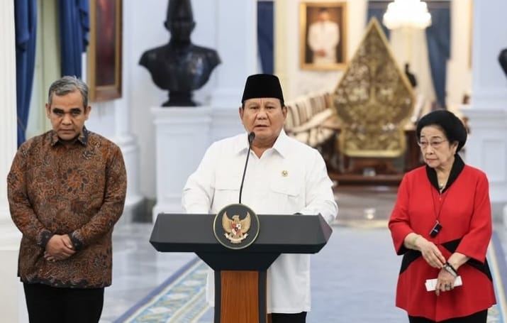 Sebagai informasi, Prabowo memberikan keterangan pers dengan didampingi seluruh pimpinan partai politik yang memiliki kursi di DPR. Mereka adalah Ketum PDIP Megawati Soekarnoputri, Waketum Demokrat Edhie Baskoro Yudhoyono (Ibas), Ketum Golkar Bahlil Lahadalia, Ketum PAN Zulkifli Hasan, Ketum NasDem Surya Paloh, Ketum PKB Muhaimin Iskandar, dan Sekjen PKS M Kholid.
