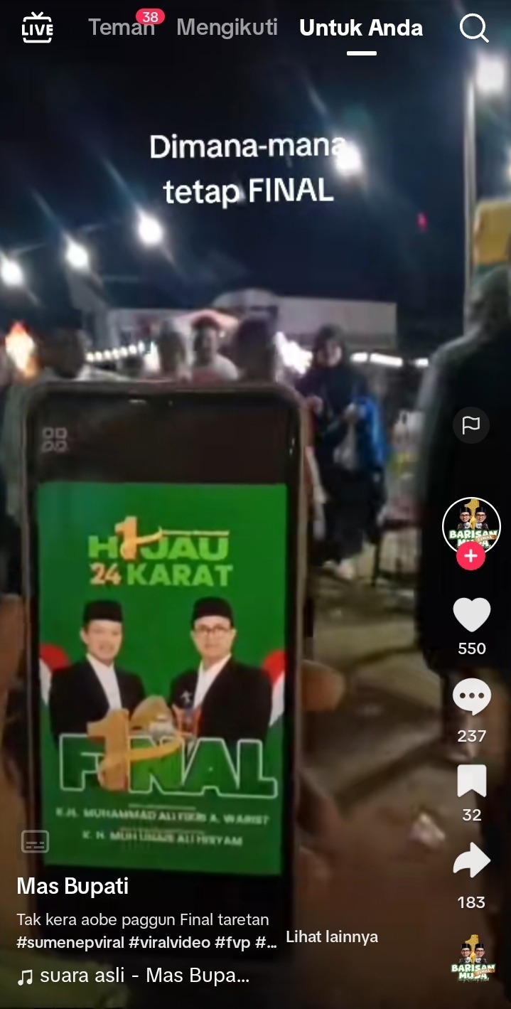 Video yang menunjukkan pendukung FINAL turut hadir viral di media sosial Tiktok. Video itu diunggah akun @sumeneppantijamet.