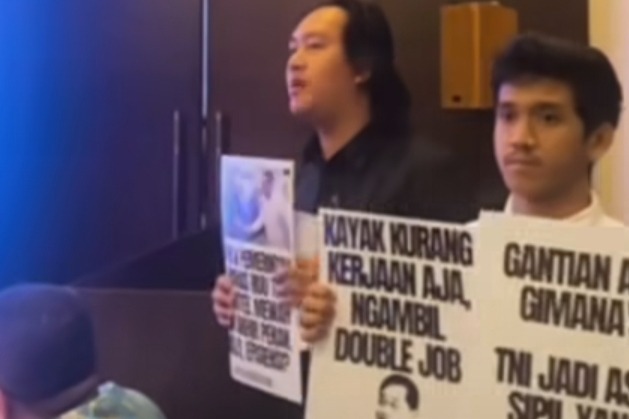 Penggerudukan rapat pembahasan RUU TNI di Hotel Fairmont.
