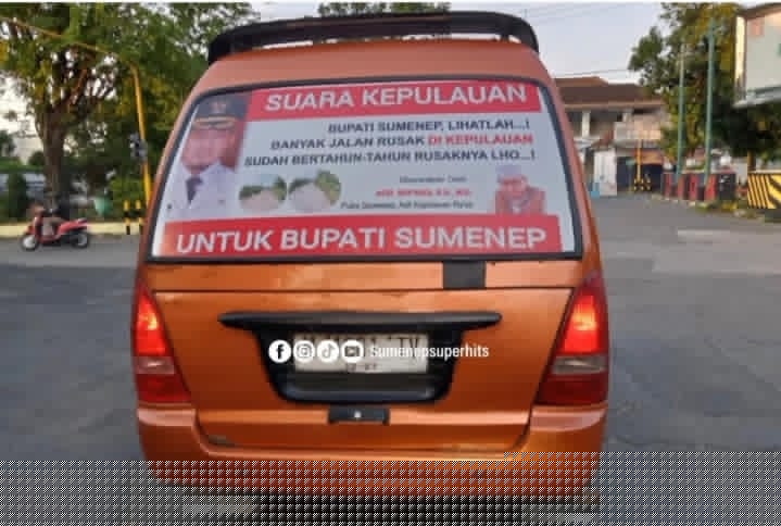 Salah satunya seperti yang dilakukan warga Kepulauan Ra’as, Ach Supyadi. Dia mengeluhkan kondisi jalan rusak di kepulauan dengan cara memasang stiker di angkutan kota (angkot).